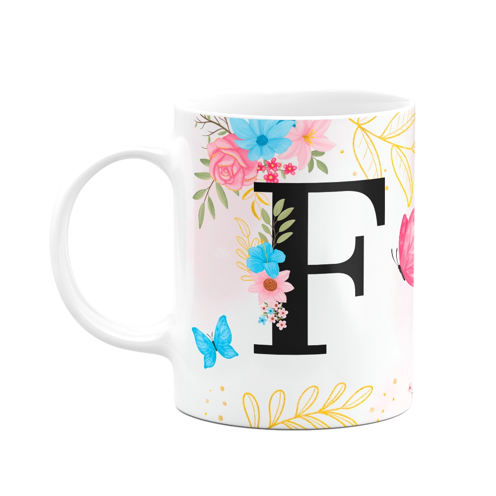 Caneca Floral Garden - Inicial do nome letra F - 325ml