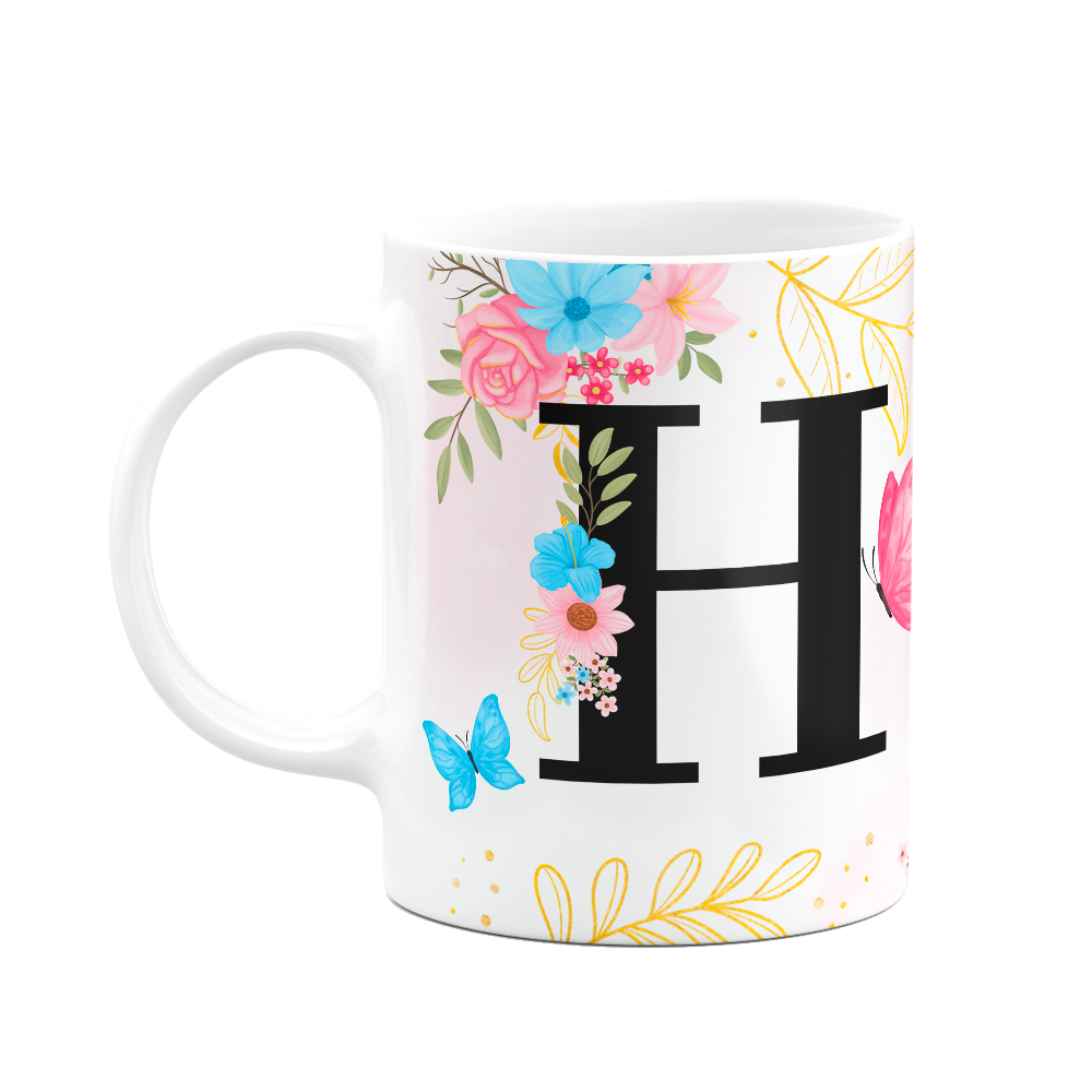 Caneca Floral Garden - Inicial do nome letra H - 325ml