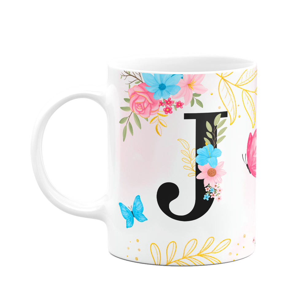 Caneca Floral Garden - Inicial do nome letra J - 325ml