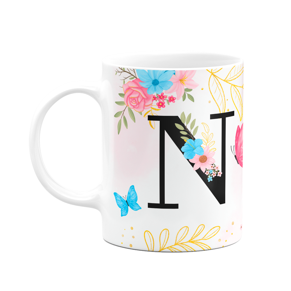 Caneca Floral Garden - Inicial do nome letra N - 325ml