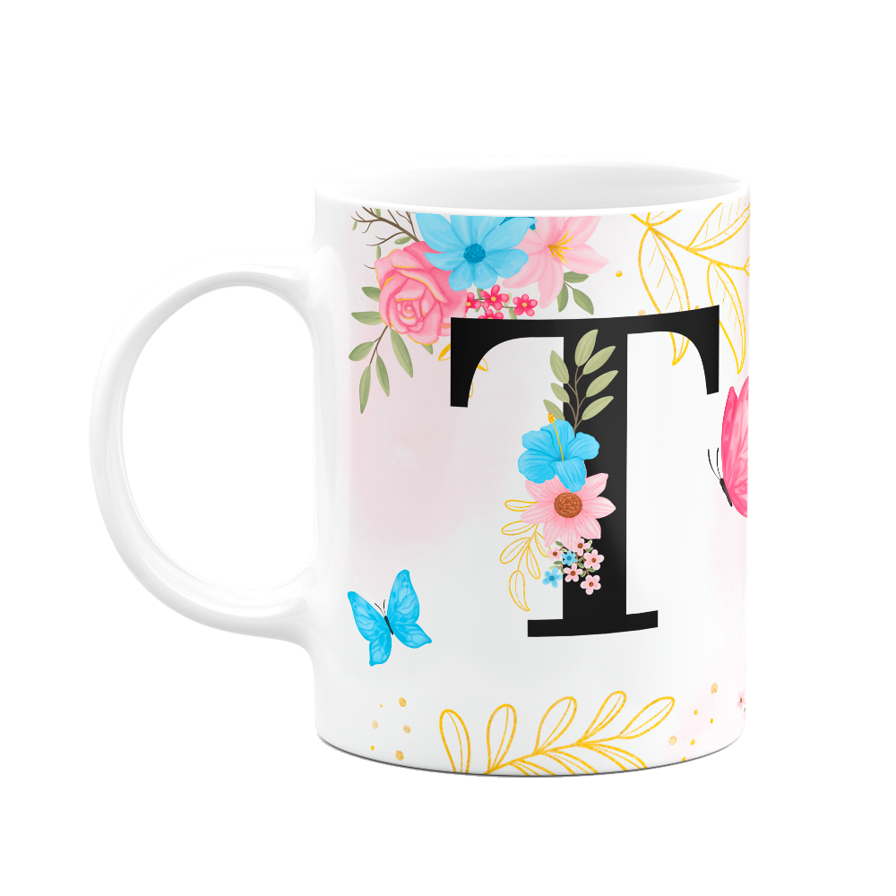 Caneca Floral Garden - Inicial do nome letra T - 325ml