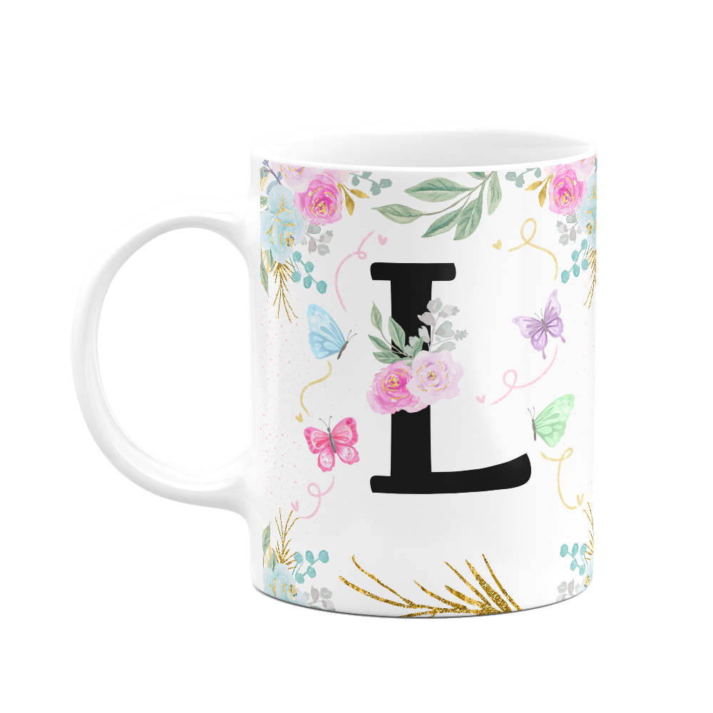 Caneca Floral - Inicial do nome letra L - 325ml