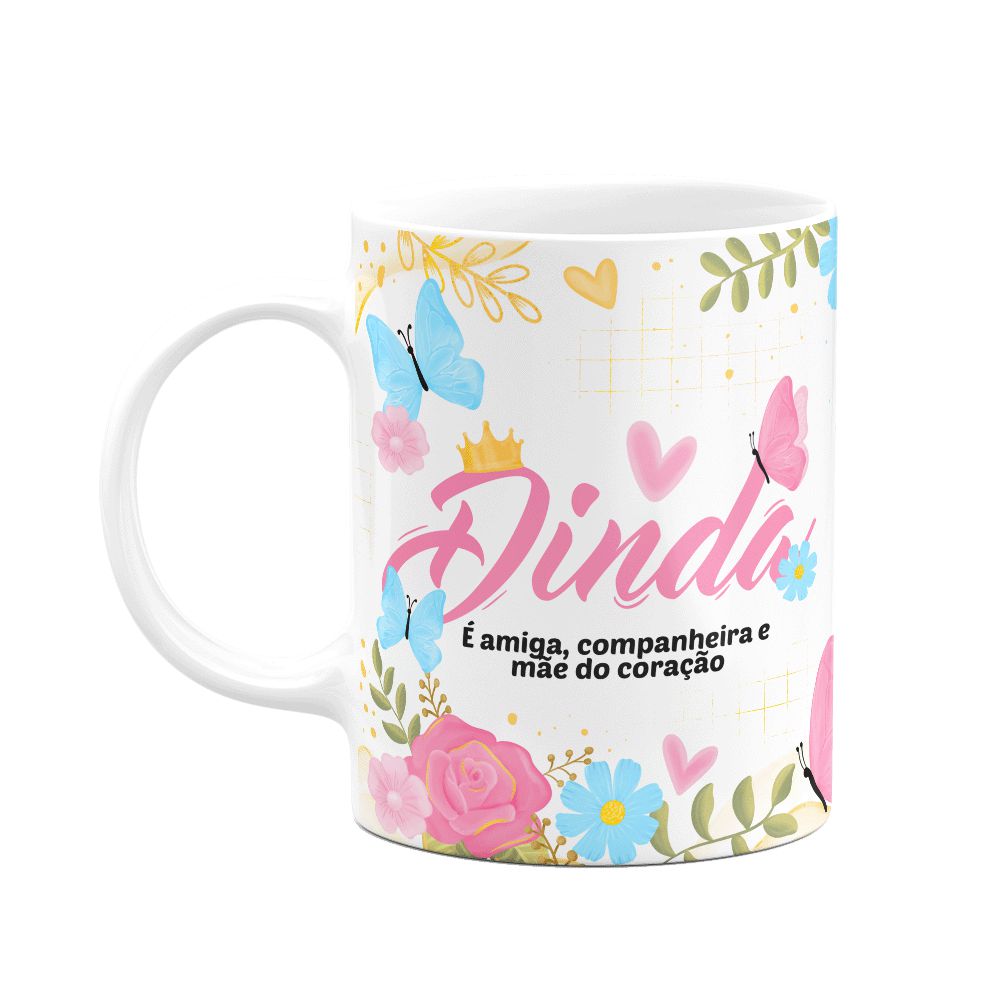 Caneca Floral Mães - Dinda é amiga e mãe de coração