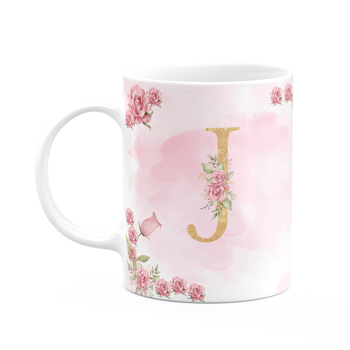 Caneca Floral Mães - Inicial do nome letra J - 325ml