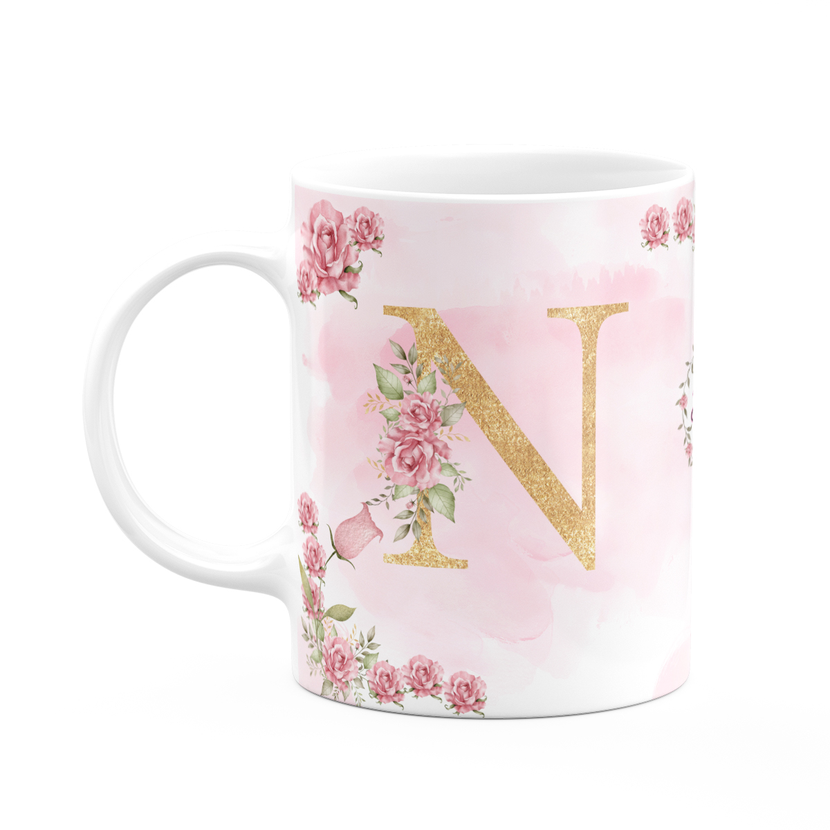 Caneca Floral Mães - Inicial do nome letra N - 325ml