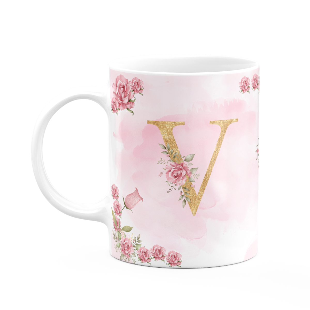 Caneca Floral Mães - Inicial do nome letra V - 325ml
