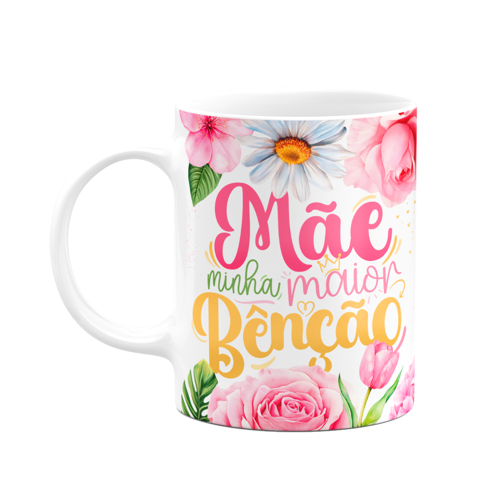 Caneca Floral Mães - Mãe, minha maior benção - 325ml