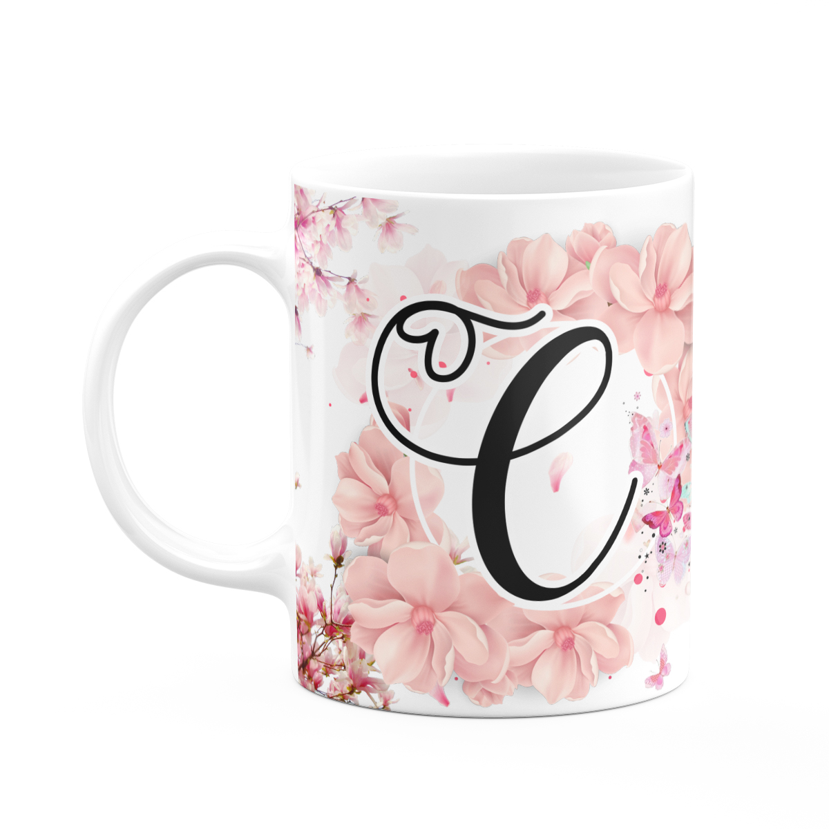 Caneca Floral Religiosa - Inicial do nome letra C - 325ml