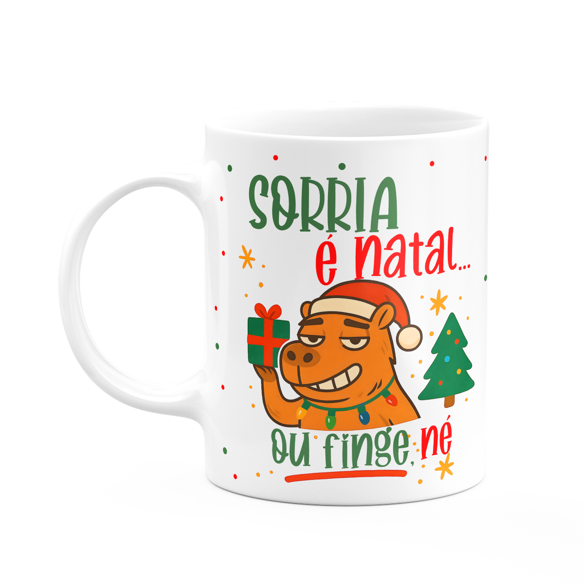 Caneca Natal e Capivaras - Sorria, é natal... ou finge né