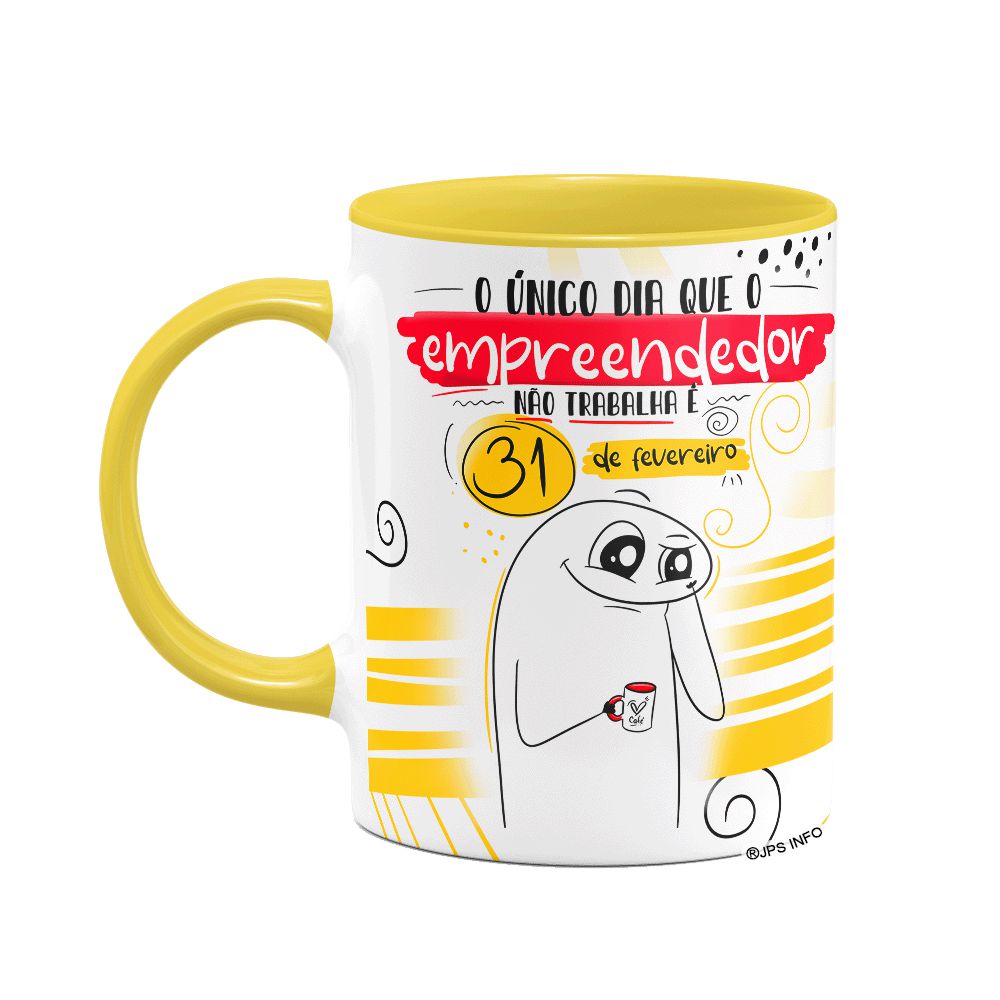 Caneca Flork Empreendedor - Único dia que não trabalha - B-yellow